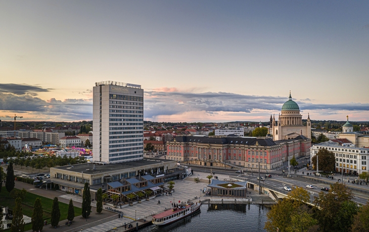 Residieren werden Sie im erstklassig gelegenen Hotel „Mercure Potsdam City“. Das 4-Sterne Hotel liegt in der historischen Stadtmitte vis-à-vis dem wiederaufgebauten Stadtschloss. Alle 210 Zimmer sind klimatisiert und haben WLAN. Die oberen Etagen bieten eine tolle Aussicht auf Potsdam und die Seen.